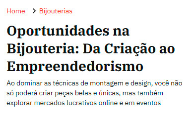 Desperte todo o seu Potencial na Arte da Bijouteria com Nosso Curso Completo. Transforme técnicas em criações únicas e estilosas. Explore suas habilidades para promover moda e estilo de forma memorável e impactante.