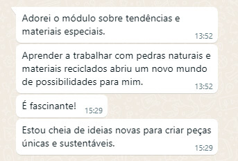 Explore as últimas tendências e experimente materiais especiais. Aprenda a trabalhar com pedras naturais, resina, couro, e técnicas avançadas.