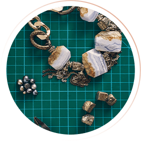 Aprofunde-se na prática com materiais especiais. Crie colares e brincos únicos com pedras naturais e tecidos.